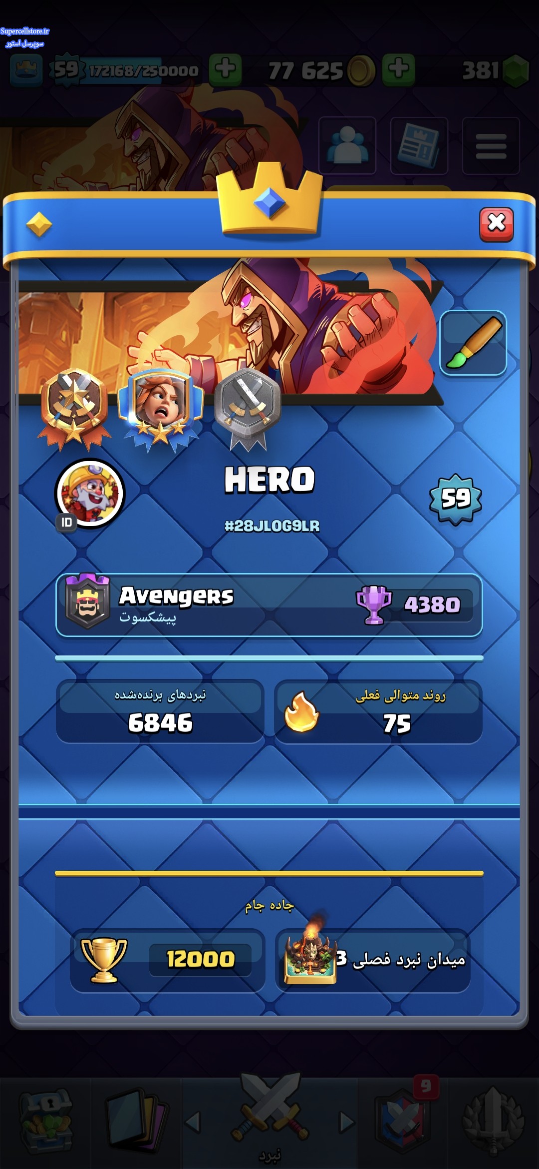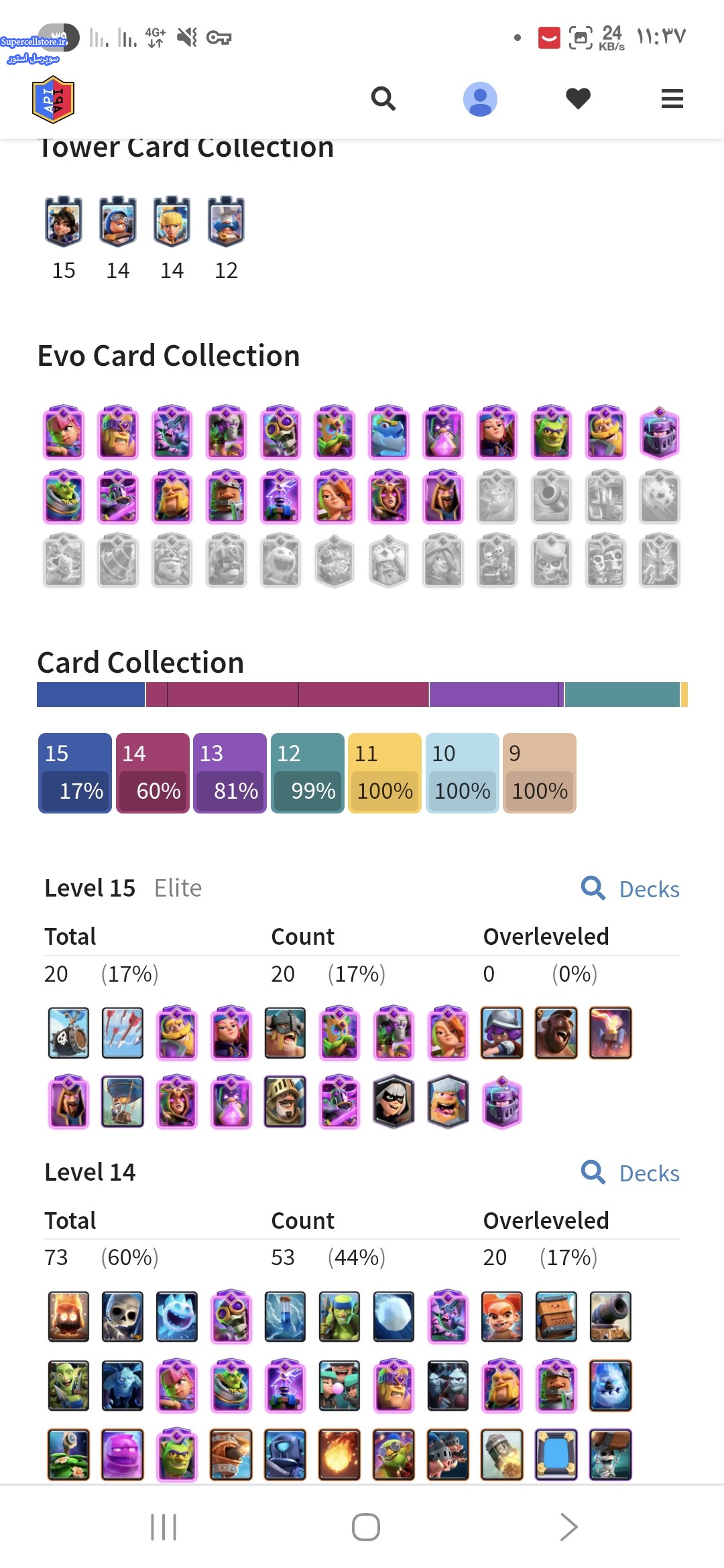 یک عدد اکانت رویال 73 کارت لول ۱۴ و ۲۱ کارت لول ۱۵