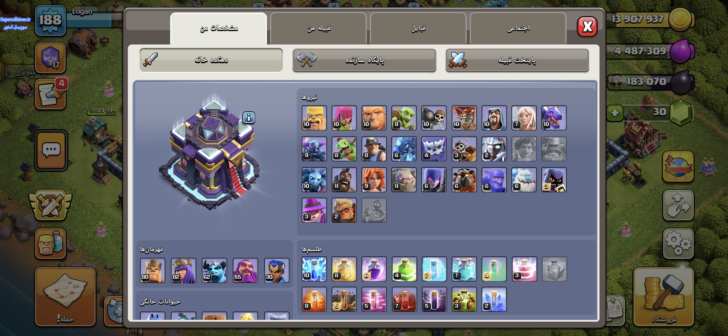 اطلاعات بازیابی (شامل تاریخ ساخت : نام اول بازی : اسم گوشی های متصل : شهر ساخت : رسید های خرید درون برنامه):