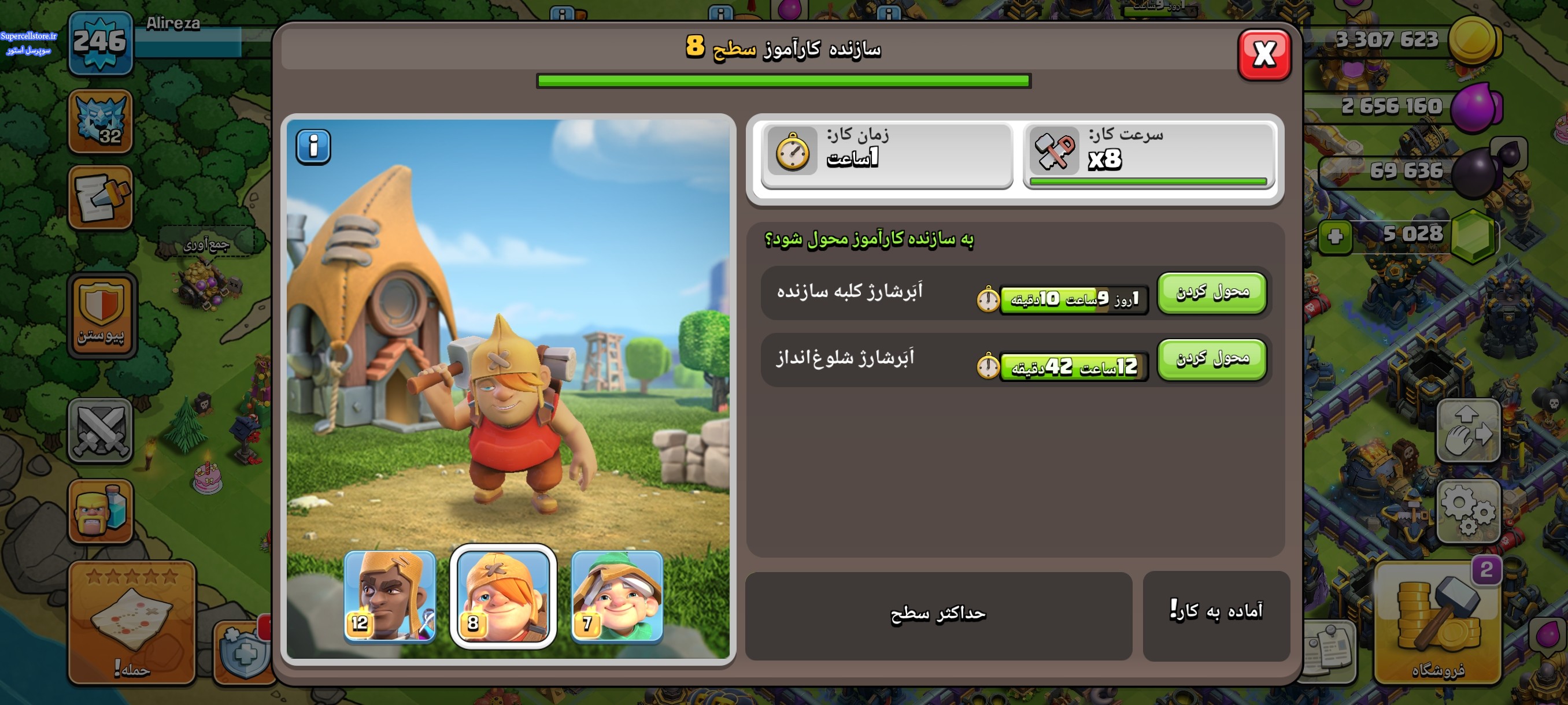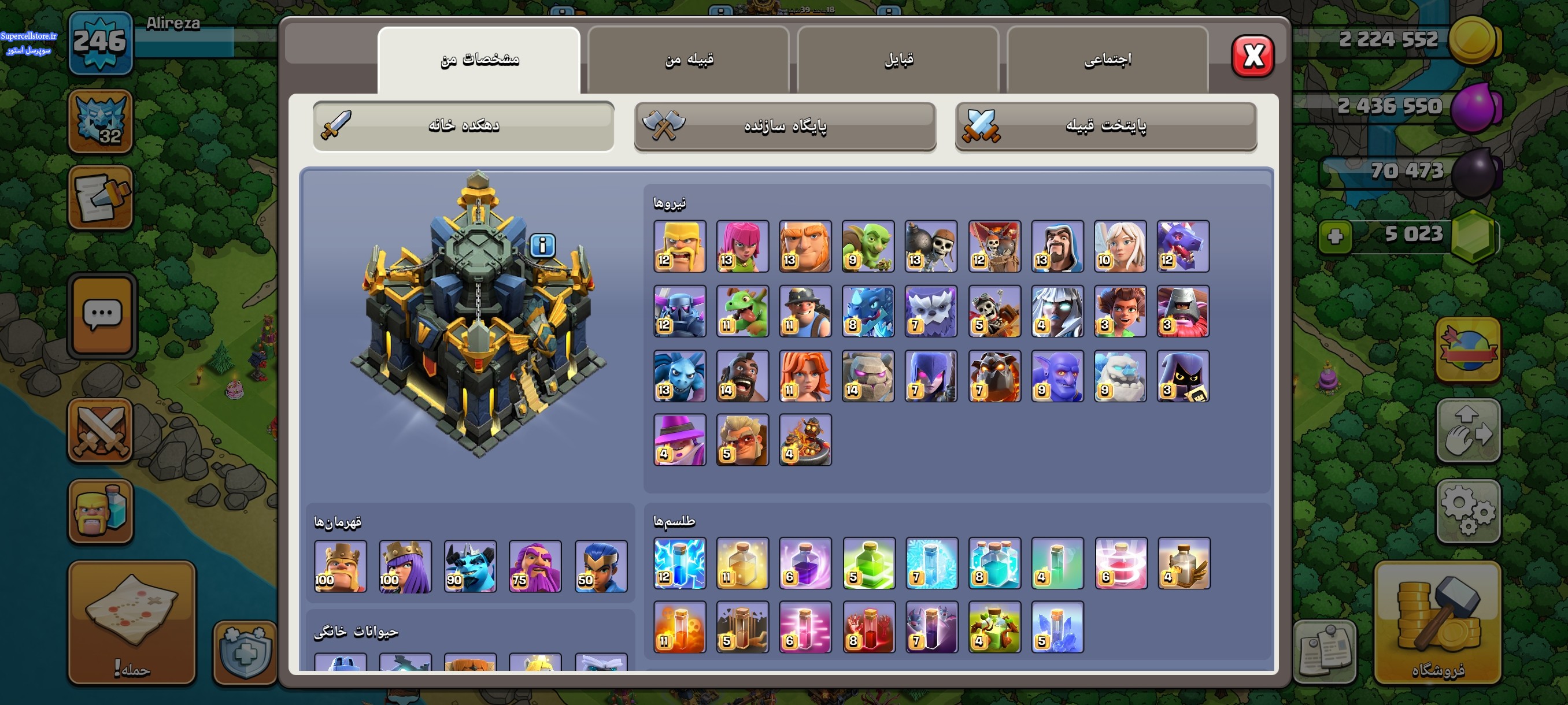 تمام نیروها مکس دفاعی ها تله ها بمبها همه فول مکس هستن دستیار آزمایشگاه سطح 12 مکس شده سازنده کارآموز سطح 8 مکس شده کیمیاگر سطح 7 مکس شده کلی جم خرجشون شده تا مکس شدن 5 هزارتا جم هم هنوز رو اکانت هست ابر شارژهای دفاعی بیشترشون مکس شده 1100 هم مدال لیگ داره تغییر نام رایگان تو عکس هم همه چیز مشخصه در کل اکانت خوب و قوی هست مبارک خریدار