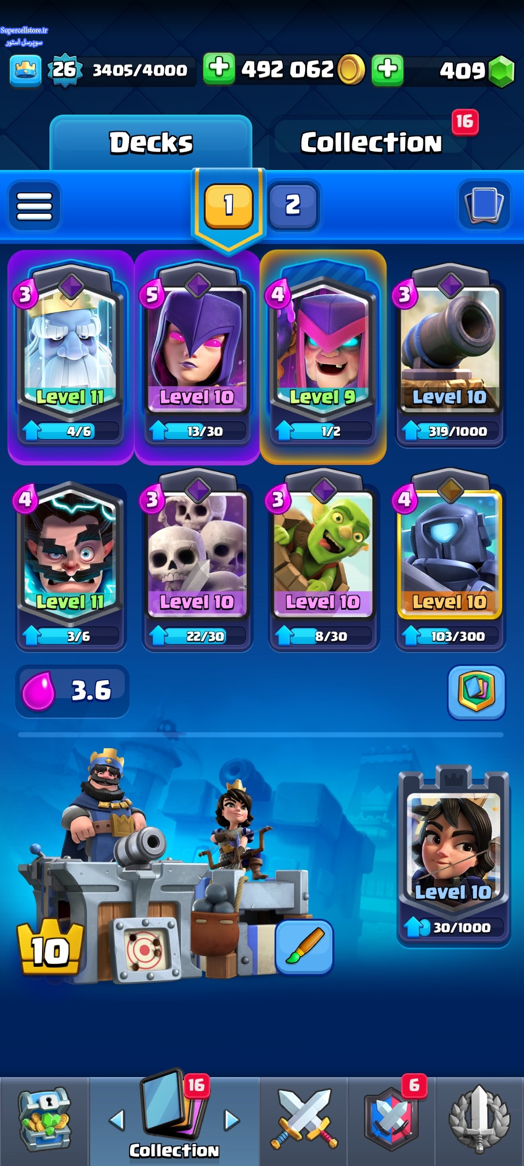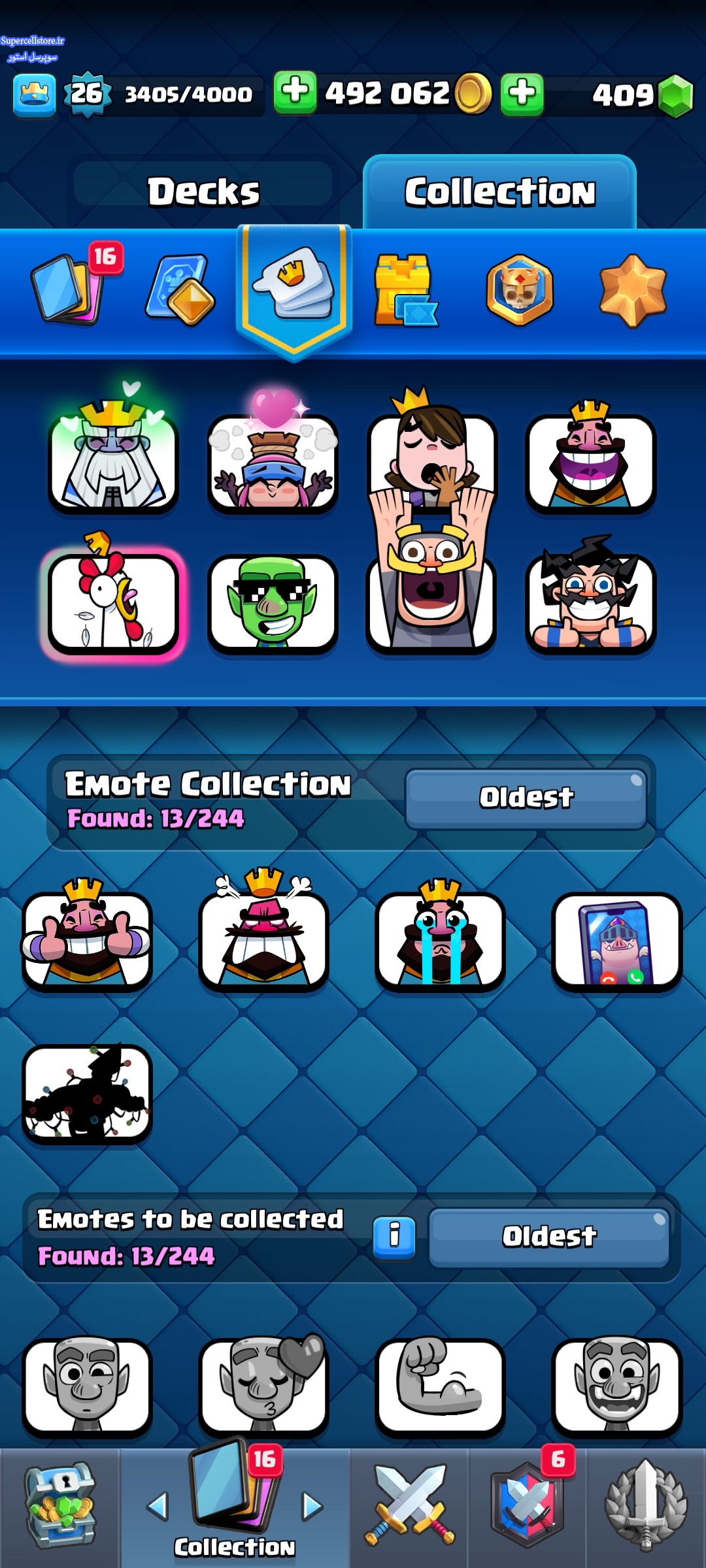 اکانت خوبیه همه کارت ها تا جا ممکن ارتقا یافته 112 تا کارت هست و اینکه ایموت ها خوب داره اکانت خوش شانسی هست